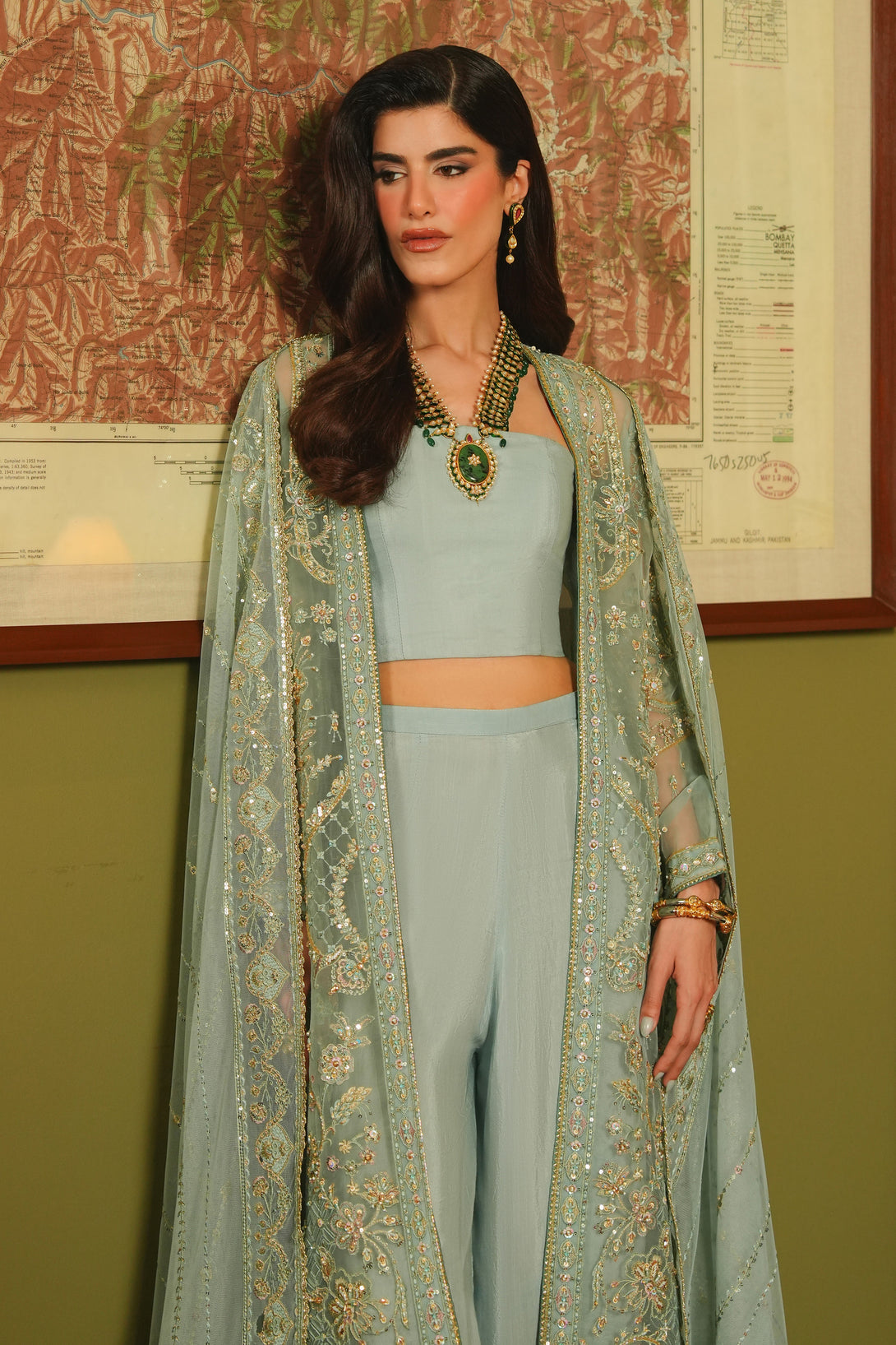 "Icy Blue Embroidered Palazzo Set with Cape Dupatta – Swaglibaas Luxe Edition"